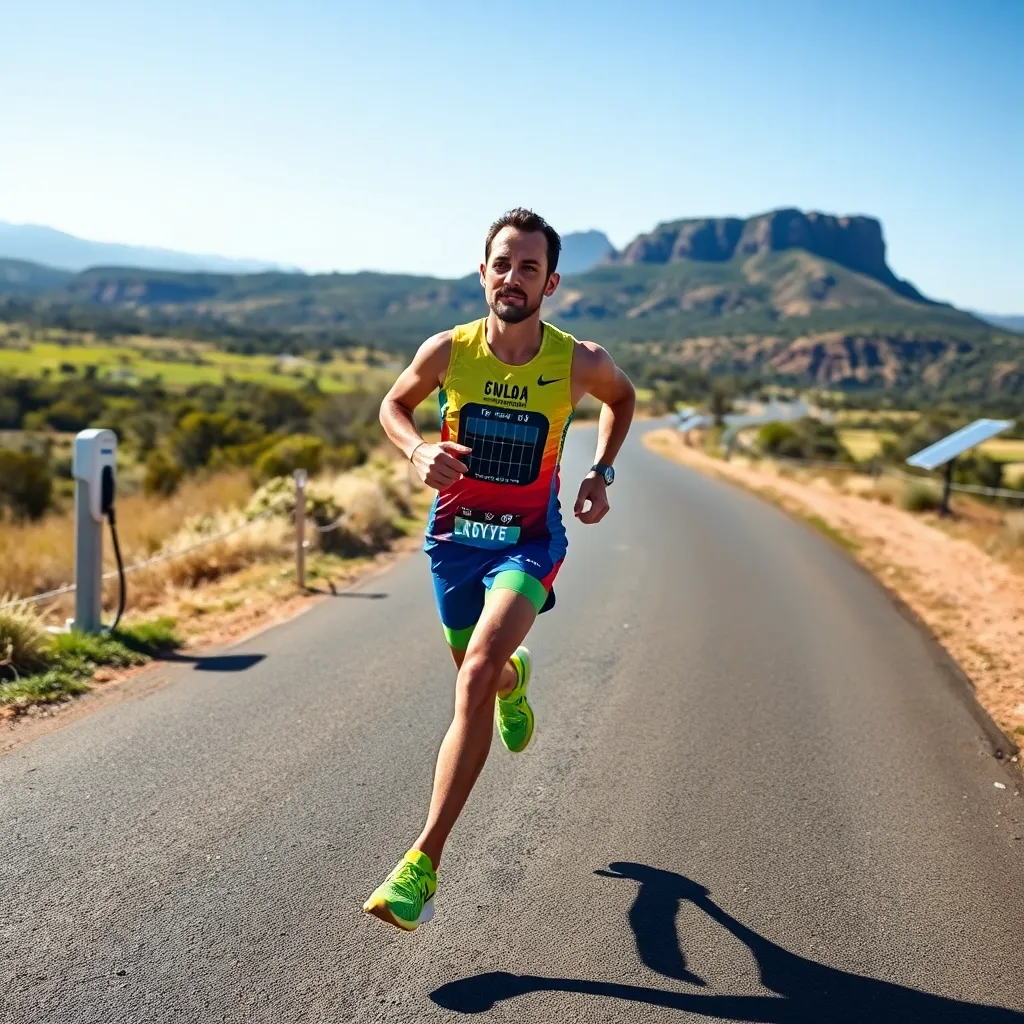 In his quest to promote electric vehicles, Goodge also partnered with local eco-friendly organizations. They set up charging stations along his route powered by renewable energy sources, creating a picturesque contrast of running shoes and solar panels.