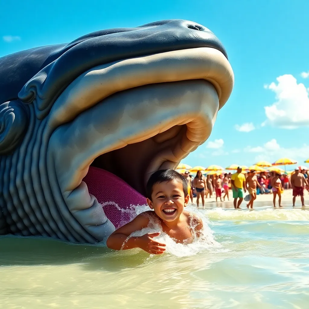 San Juan, Puerto Rico - In an astonishing turn of events that could only happen in a world where reality takes a backseat to sheer absurdity, a young boy named Adrián Simancas found himself on the receiving end of a whale’s curious appetite. In what can only be described as the latest episode of ‘When Nature Attacks,’ Adrián was unexpectedly swallowed whole by a humpback whale while enjoying a day at the beach with his father, Dell Simancas.