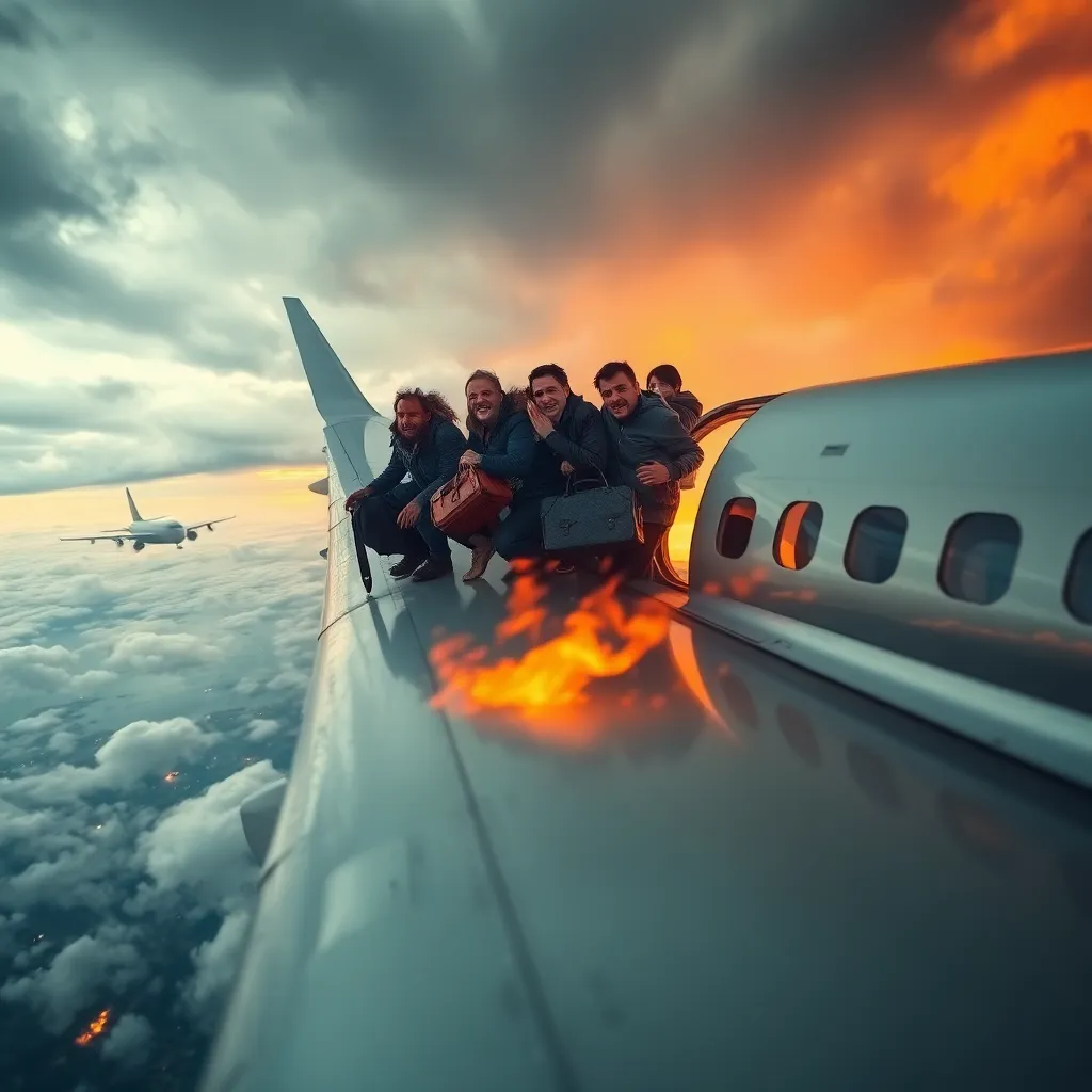 In an unexpected twist of aviation fate, a commercial airliner on the tarmac recently transformed into an impromptu winged refuge for its passengers. Footage of the incident shows terrified travelers huddled on the wing of the aircraft while flames flicker ominously beneath them. It’s a scenario that could make a Hollywood action movie look like a rom-com.