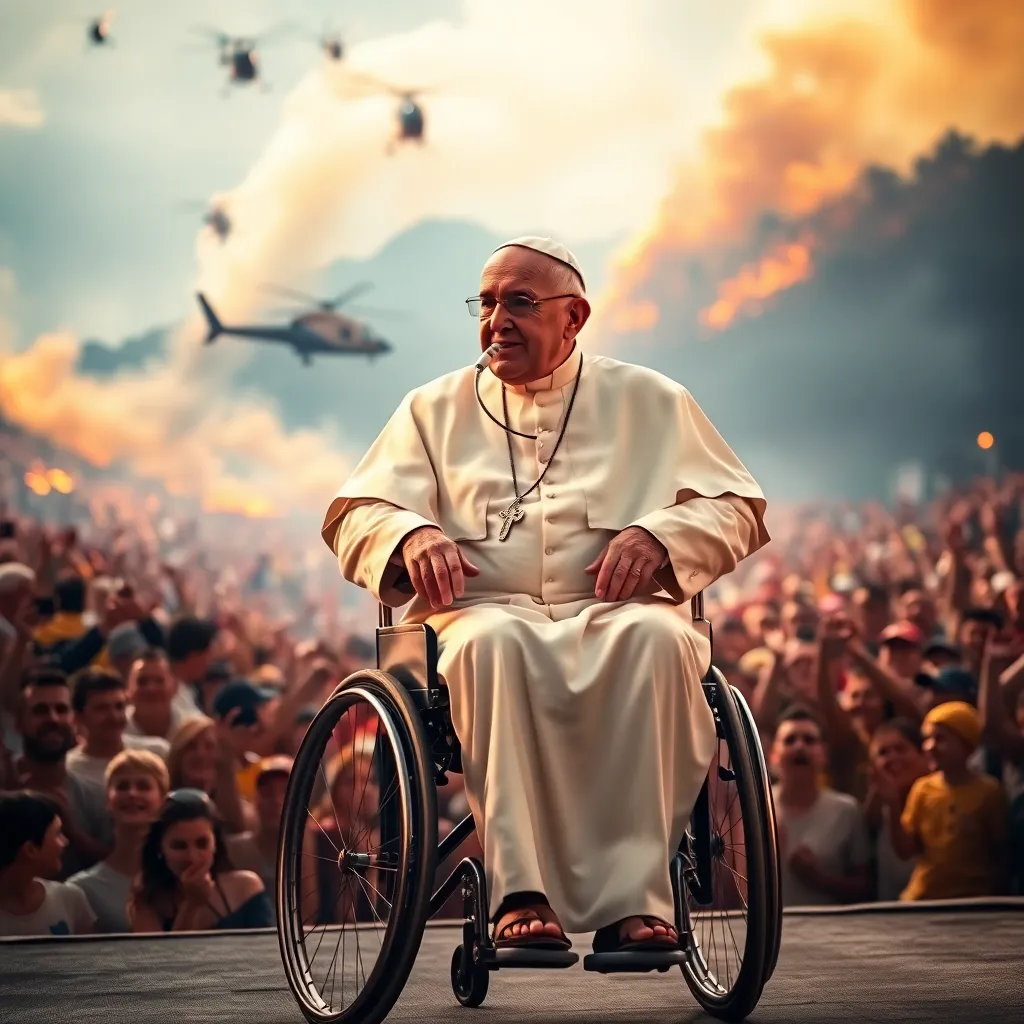 In a twist that could only be described as a scene from a surreal comedy, Pope Francis made a brief reappearance on stage in a wheelchair, sporting a breathing tube, just two weeks after a bout with pneumonia that had the world holding its breath—quite literally. As the pontiff rolled out to greet the masses, one couldn’t help but wonder if he was channeling the spirit of a divine mobility scooter advertisement.