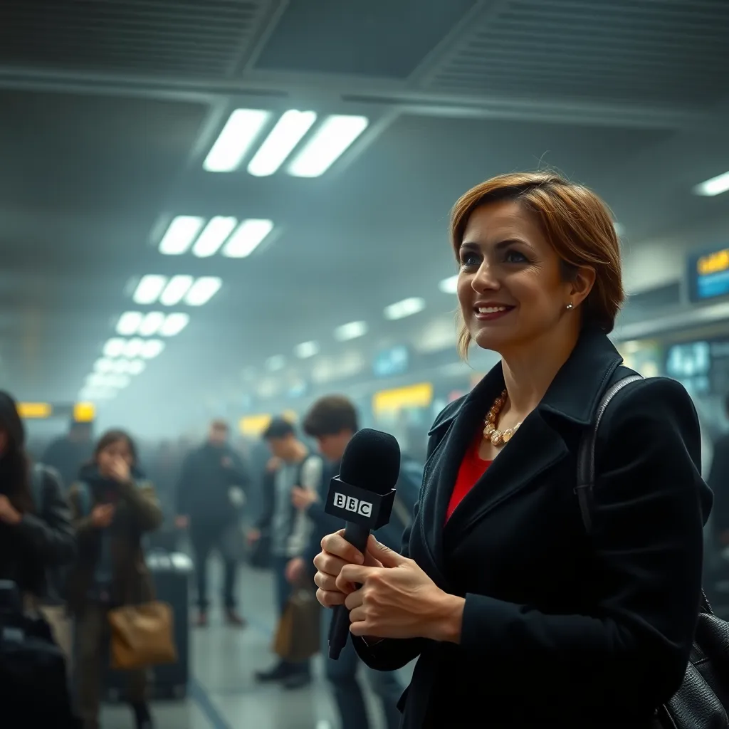 Charlotte Gallagher, a destemida repórter da BBC, estava no local, fornecendo atualizações ao vivo sobre o cenário bizarro que se desenrolava. “É como uma cena de um filme de desastre, exceto que a única coisa explodindo são as esperanças das pessoas de irem de férias!” ela brincou, claramente se divertindo com a absurdidade da situação.