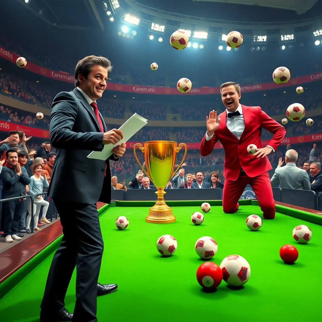 Imagine um cenário onde Arteta e O’Sullivan são colocados um contra o outro—não no campo ou na mesa de snooker, mas em um desafio bizarro que une os dois esportes. Imagine isso: uma mesa de snooker montada no meio do Estádio Emirates, com jogadores tentando encaçapar bolas enquanto esquivam-se de bolas de futebol sendo chutadas pelos defensores do Arsenal. As apostas? Um troféu que poderia ser descrito apenas como um taco dourado cruzado com uma bola de futebol, brilhando sob as luzes do estádio.
