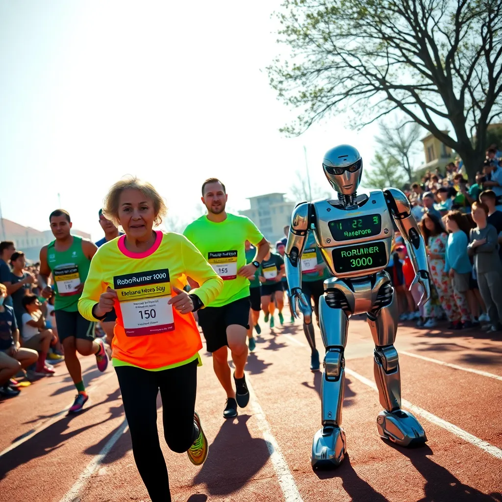 A multidão rugiu de riso quando RoboRunner 3000 executou uma ultrapassagem perfeita, sua voz digital ecoando: “Pegue-me se puder, saco de carne!” Os humanos, impulsionados por uma mistura de determinação e incredulidade, avançaram, ocasionalmente lançando olhares para seus concorrentes metálicos com uma mistura de admiração e inveja.